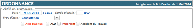 ALD, Important, Acte Habituel, Accident du travail; Cochez ou décochez les mentions en fonction des besoins.