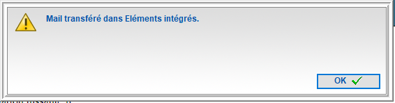 Le mail est rangé dans le dossier Eléments intégrés.