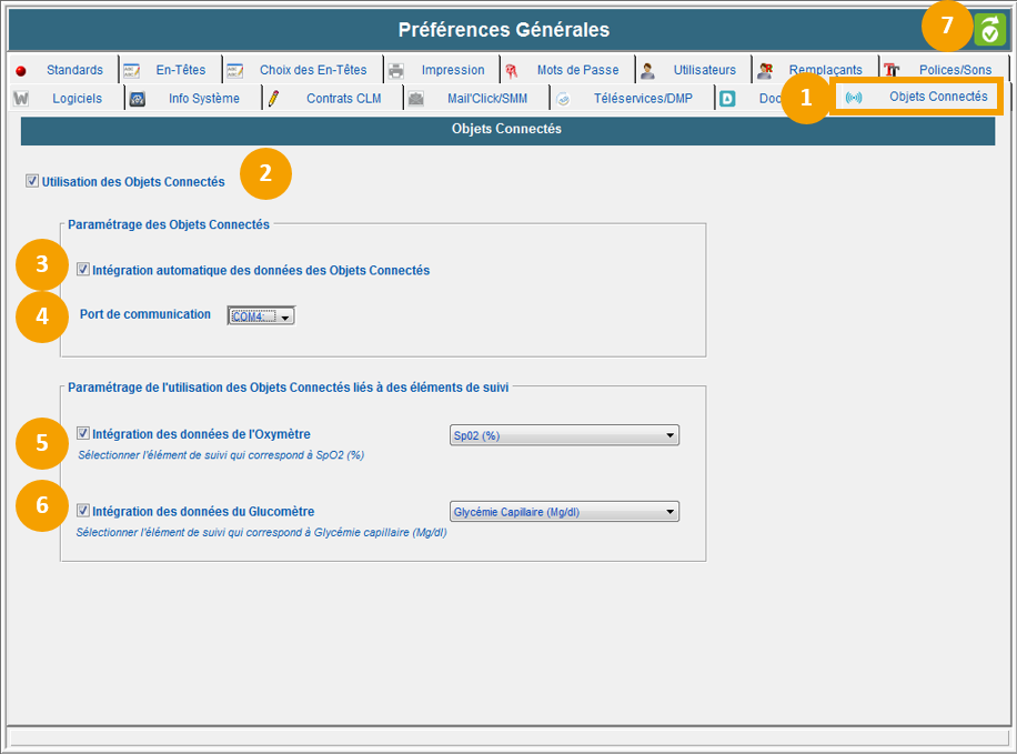 1. Depuis les Préférences Générales de MédiClick , positionnez-vous sur l'onglet Objets connectés,