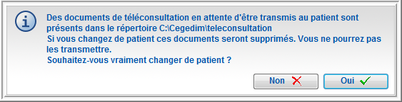 Si vous changez de dossier patient ou que vous quittez MédiClick, ce message d'information apparaît : |