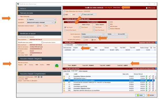 La Feuille de Soins en mode dégradé s'ouvre.