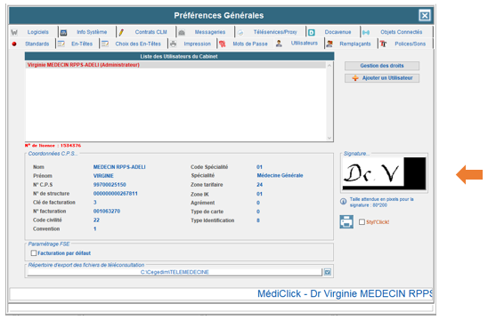 Votre signature apparait automatiquement sur vos ordonnances médicamenteuses et complémentaires, lorsque vous typerTéléconsultation lors de la rédaction de celles-ci.