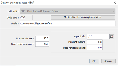 Si l’acte COE n’est pas présent dans la liste des actes NGAP, cliquez sur :