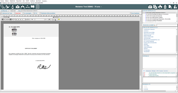 Par défaut nous avons inséré votre signature scannée. Si celle-ci n’est pas définie, imprimez le certificat, puis apposez votre signature et votre tampon.
