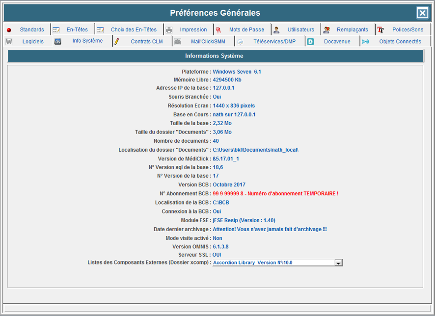 Depuis cet onglet, vous pouvez visualiser les informations systèmes telles que :