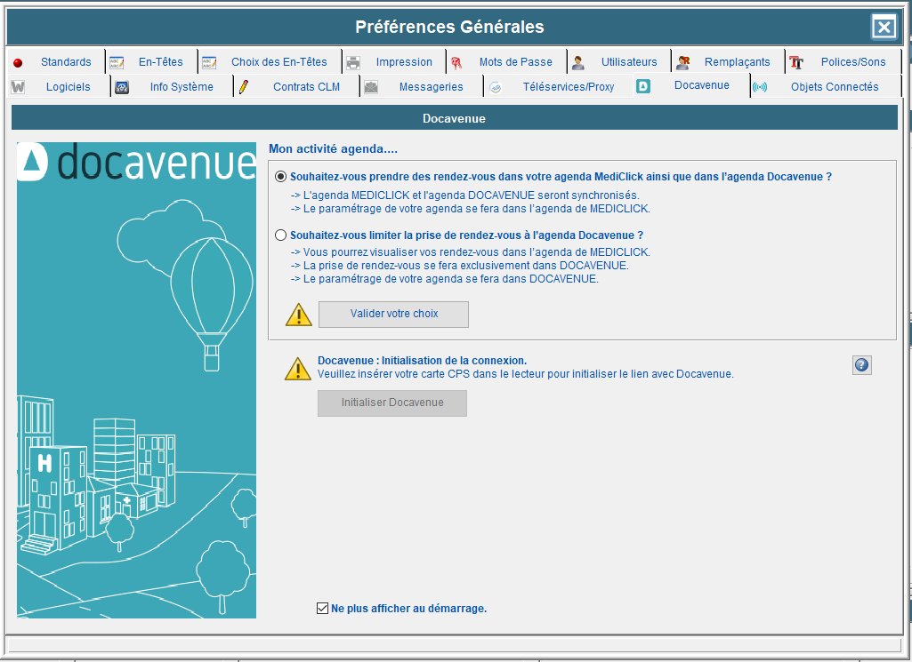Depuis cet onglet, vous pouvez initialiser la connexion à Docavenue.