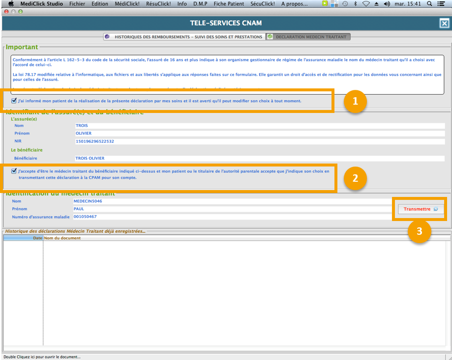 Pour télétransmettre la Déclaration Médecin traitant à la CPAM