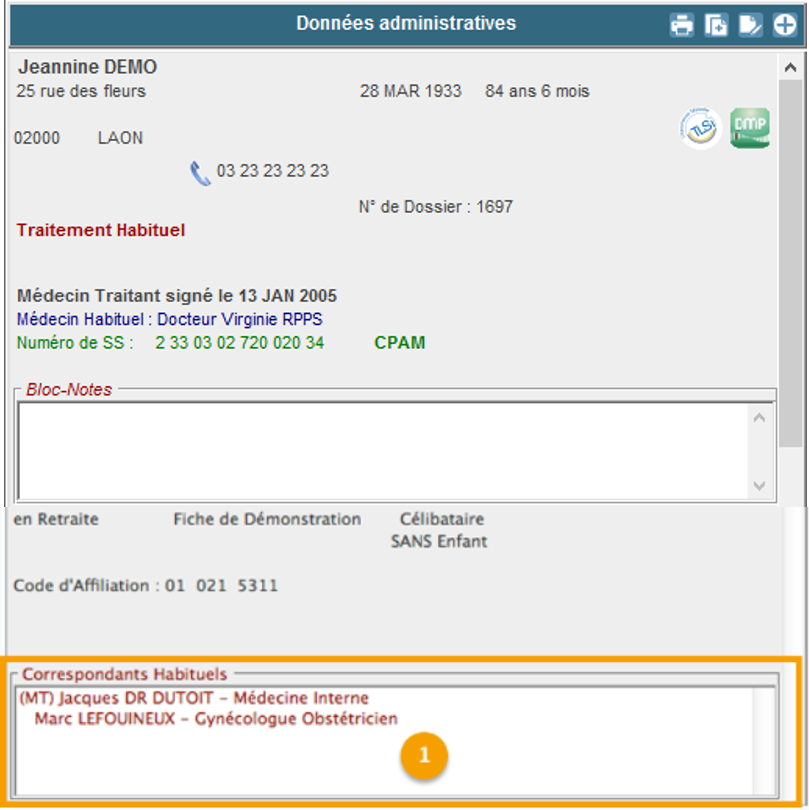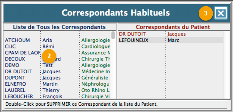 1. Double-cliquez dans le cadre des correspondants habituels du patient