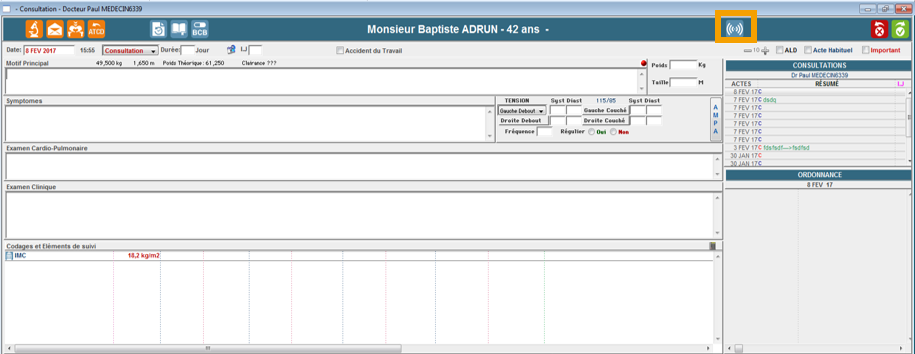 5. Le mode de prise de la tension indiqué dans la consultation est reporté dans cette fenêtre Mesures des objets connectés. Si vous le modifiez depuis cette fenêtre, celui-ci sera reporté dans la consultation.