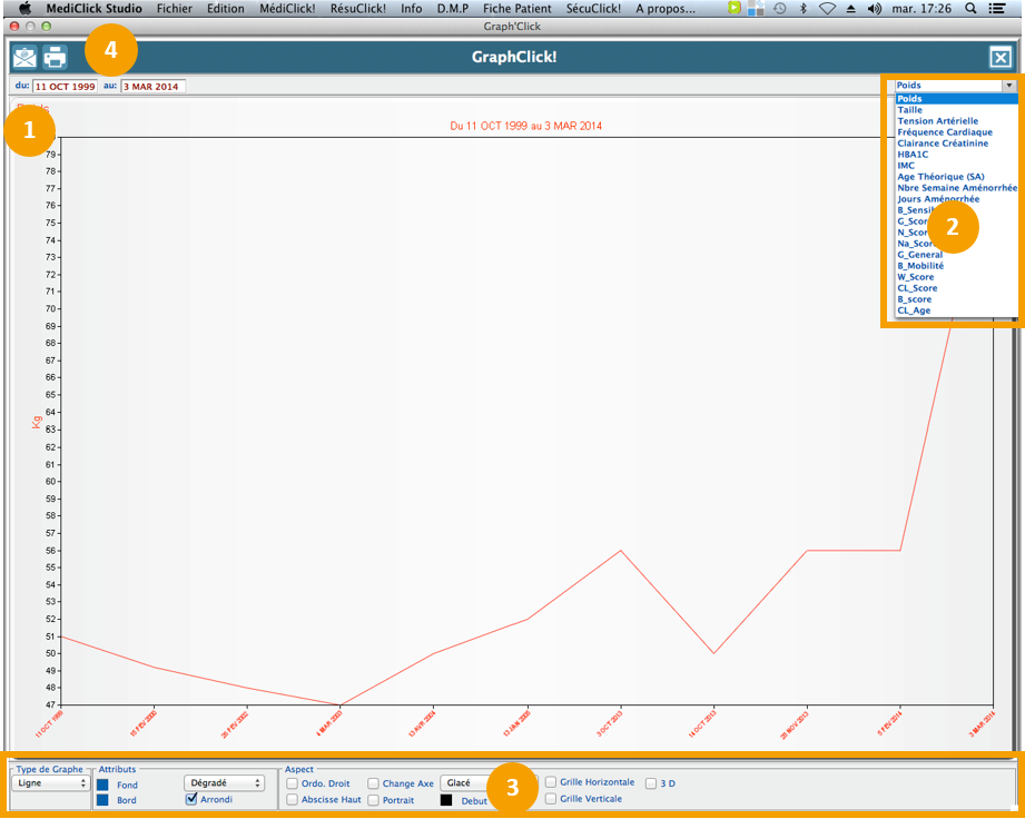 4. Cliquez sur pour imprimer le graphique ou sur pour envoyer le graphique par mail à un confrère par exemple.