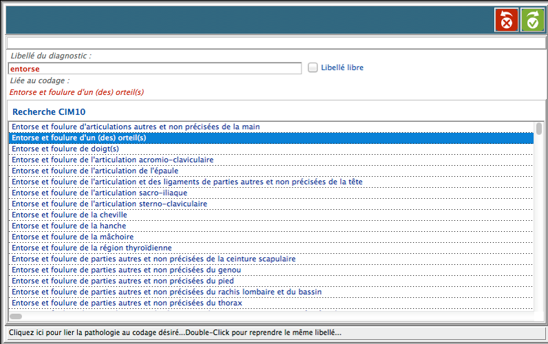 Sélectionner le diagnostic désiré issu de la recherche dans la CIM10 ;