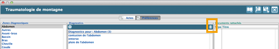 Définir une liste de diagnostic pour une zone de traumatisme
