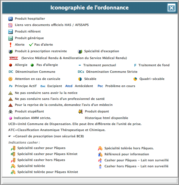 | . | Aide en ligne MédiClick - version 20.00 > Les ordonnances médicamenteuses > Présentation de la fenêtre > Iconographie de l'ordonnance |