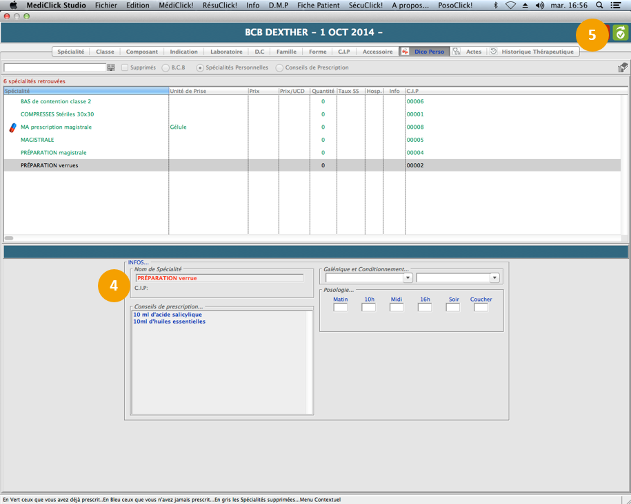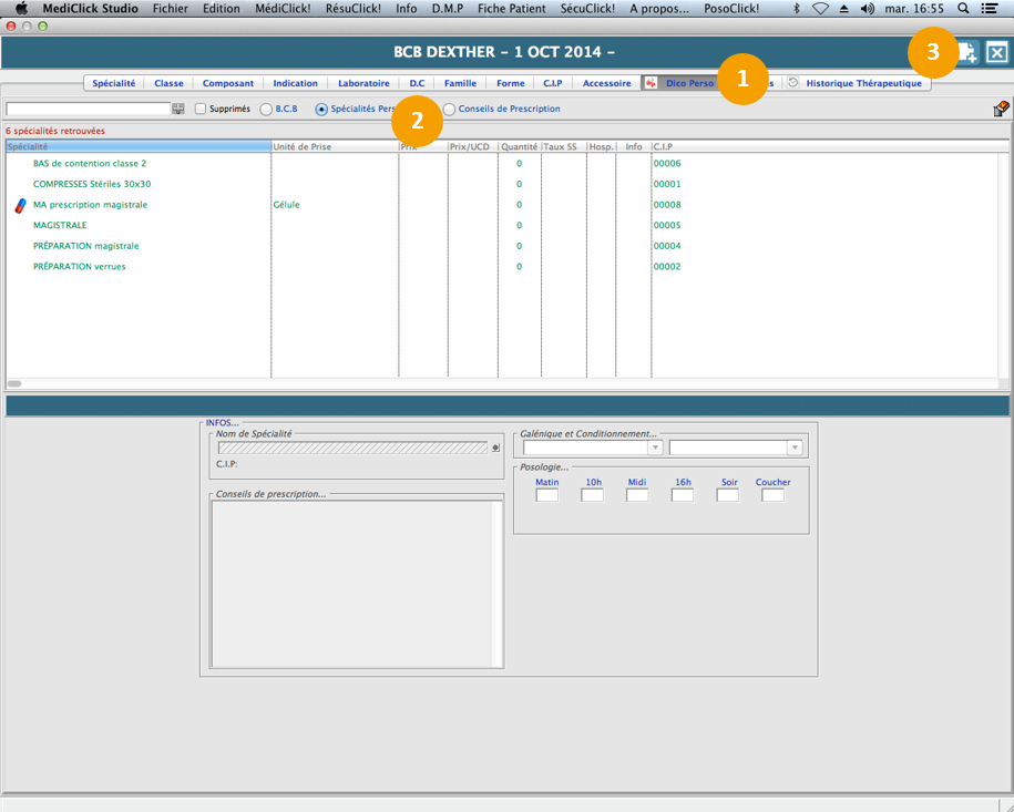 Dans la BCB il y a un dictionnaire personnel. Dans ce dictionnaire personnel, vous avez la possibilité de créer des spécialités personnelles soit des médicaments ou préparations ainsi que des conseils de prescriptions.