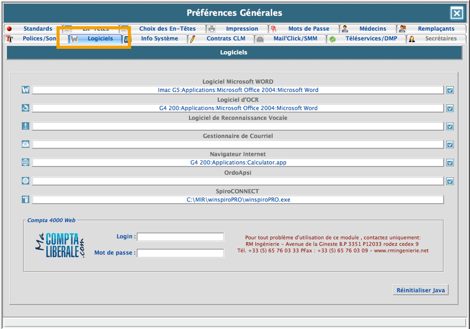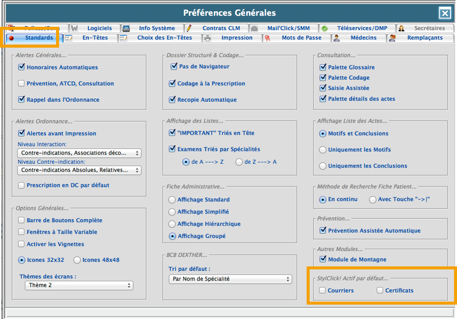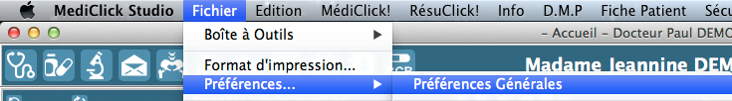 Les paramétrages de ce module sont possibles depuis les Préférences de Médiclick :
