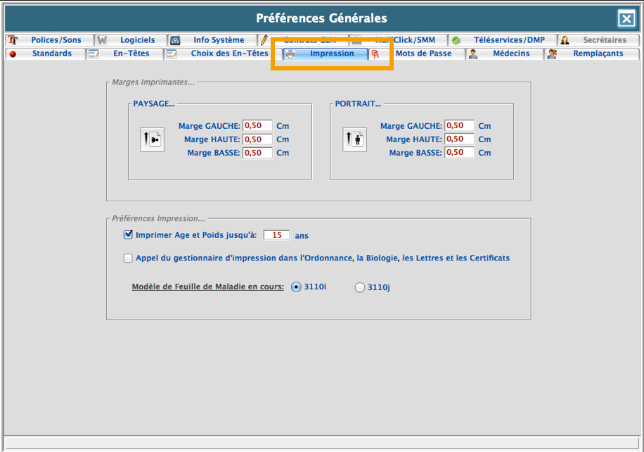 Préférences Impression