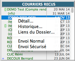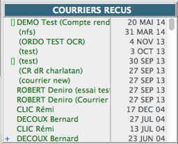 Cette zone affiche l’ensemble des courriers reçus (ceux que vous avez pris la peine de noter !) relatif au patient sélectionné. Un courrier de