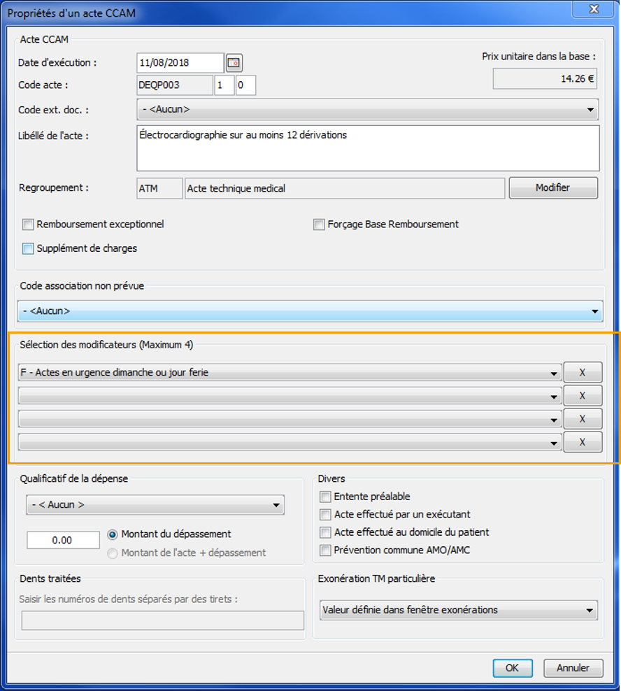 En cours d'élaboration d'une feuille de soins, vous avez la possibilité de facturer un acte CCAM avec un modificateur.