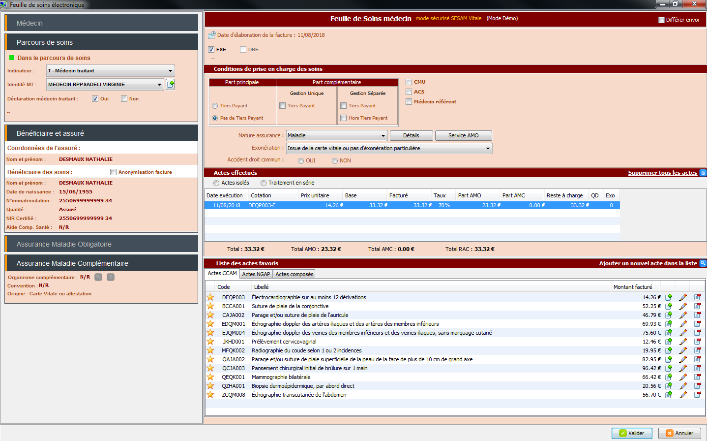 Vous pouvez également, cliquer sur pour rajouter l'acte sur la Feuille de Soins.