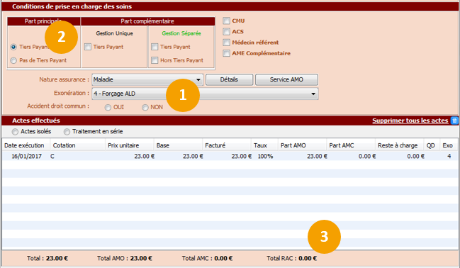 2. L'option Tiers Payant, sur la part principale est cochée automatiquement,