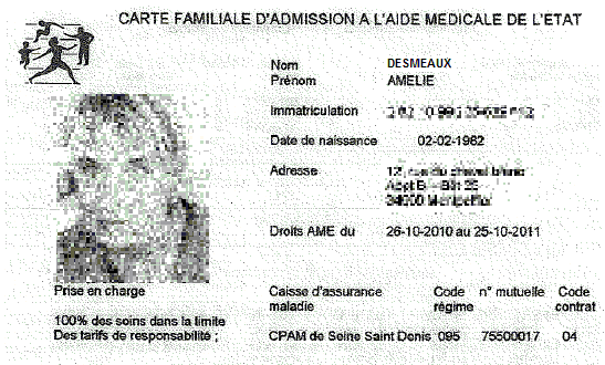 Sur une attestation d'admission AME figurent les éléments suivants :
