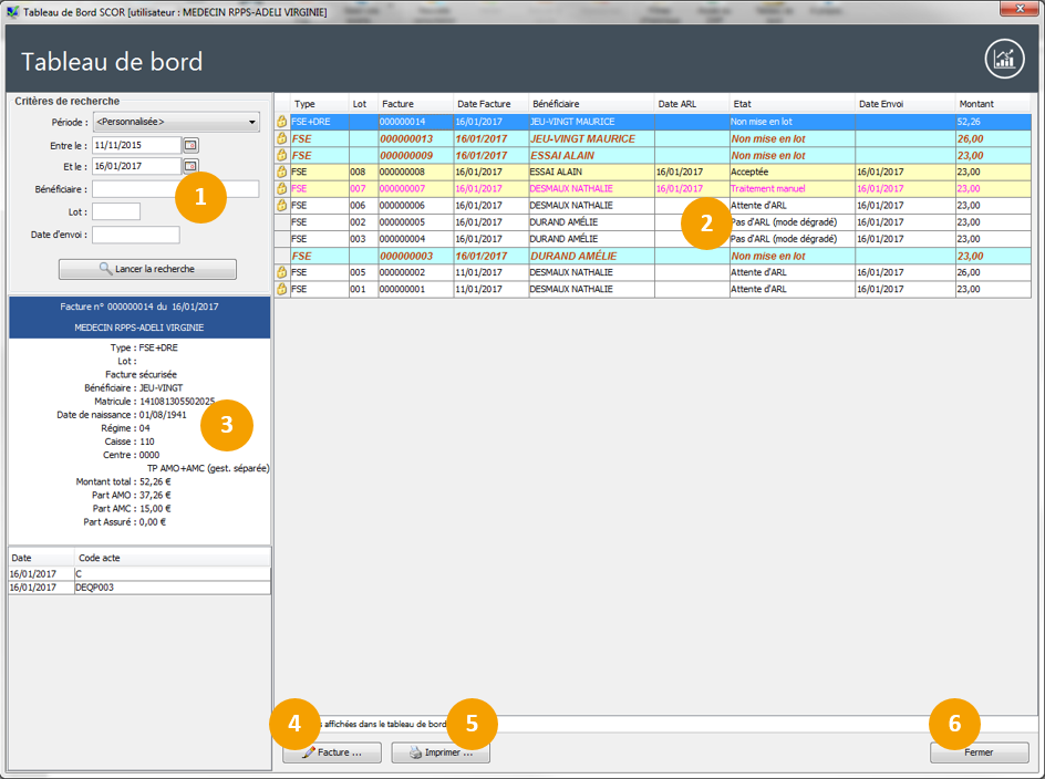 Le champ État paiement permet d'avoir une meilleure visibilité de l'état de vos factures réalisées en Tiers payant.