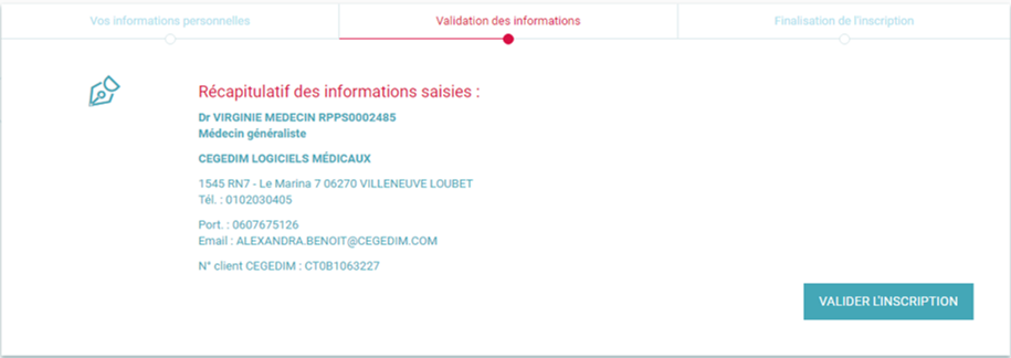 Un récapitulatif des informations que vous avez saisies apparaît, cliquez sur .