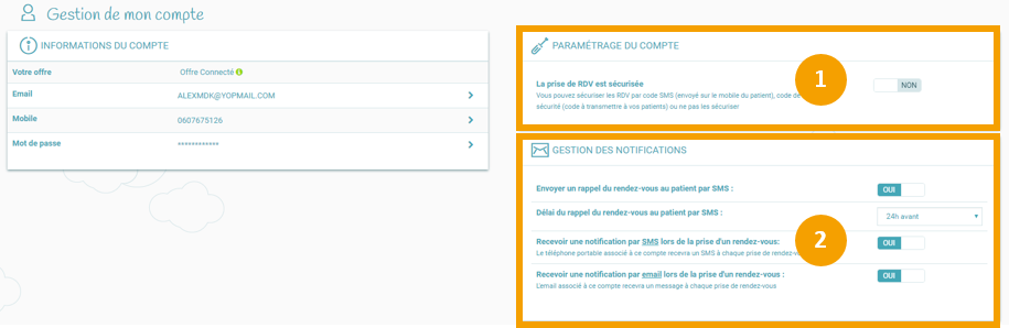 1. Paramétrer la gestion de votre compte Docavenue, notamment si vous souhaitez que la prise de RDV soit sécurisée par un code.