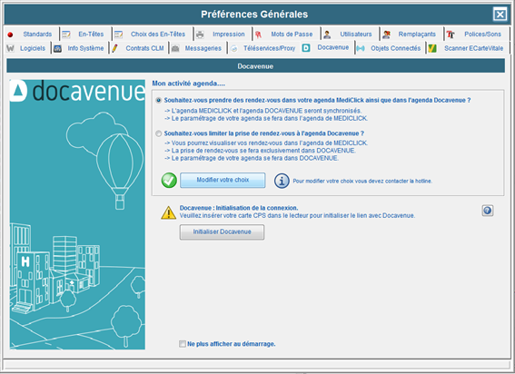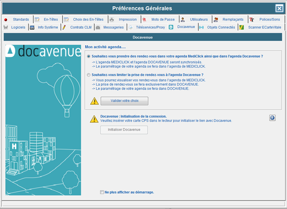 Désormais, avant de faire l'initialisation de Docavenue, il vous sera demandé de faire un choix.