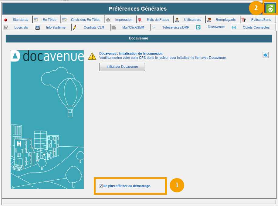 En version 5.16.01 de MédiClick, si vous êtes abonné au service Docavenue, l'écran d'initialisation et de synchronisation entre Docavenue et l'agenda MédiClick est automatiquement proposé dès l'ouverture de MédiClick.