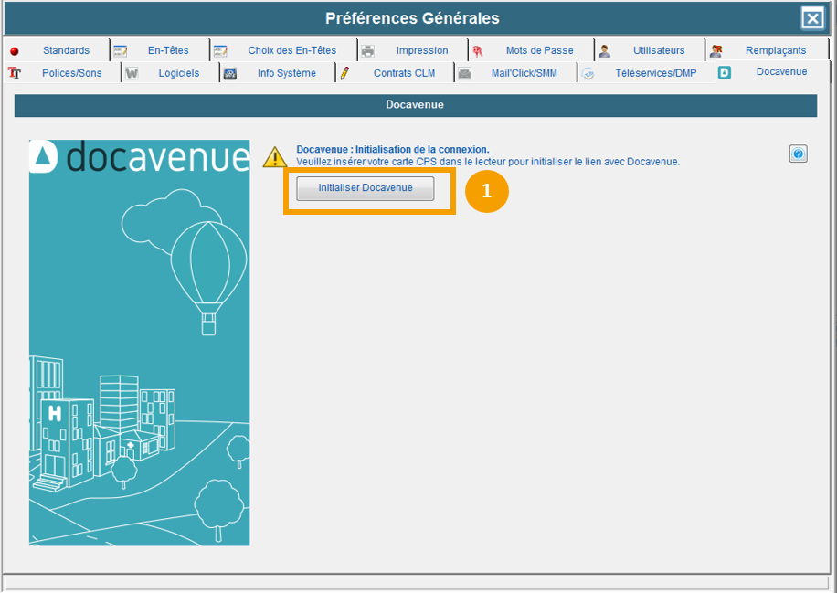 Pour initialiser Docavenue, cliquez sur le bouton .