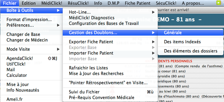 | . | Aide en ligne MédiClick - version 20.00 > L'Optimisation de la base MédiClick > Gestion des doublons > Accédez à la gestion de doublons |