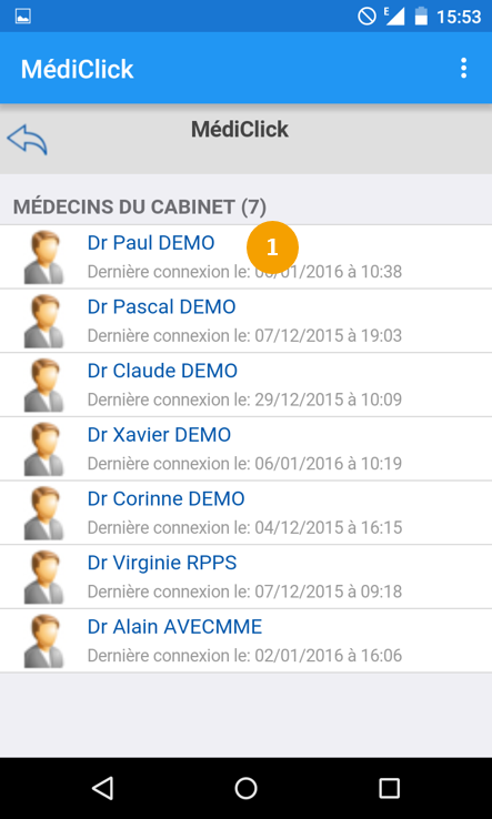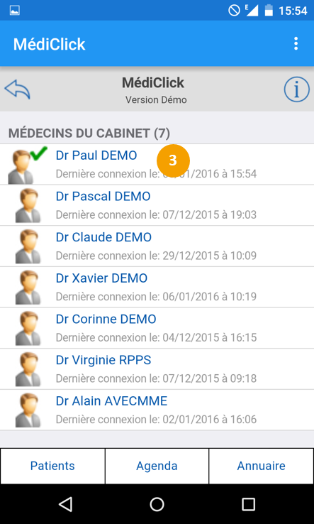 Si vous n'êtes pas client, choisissez le profil Dr Paul DEMO pour avoir un aperçu de l'application MédiClick Mobile Édition.
