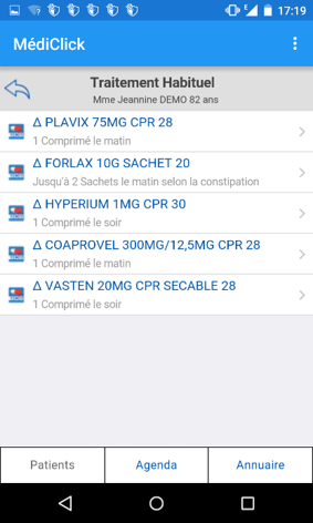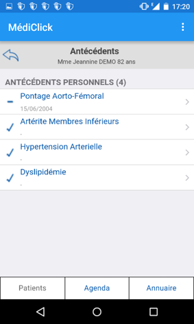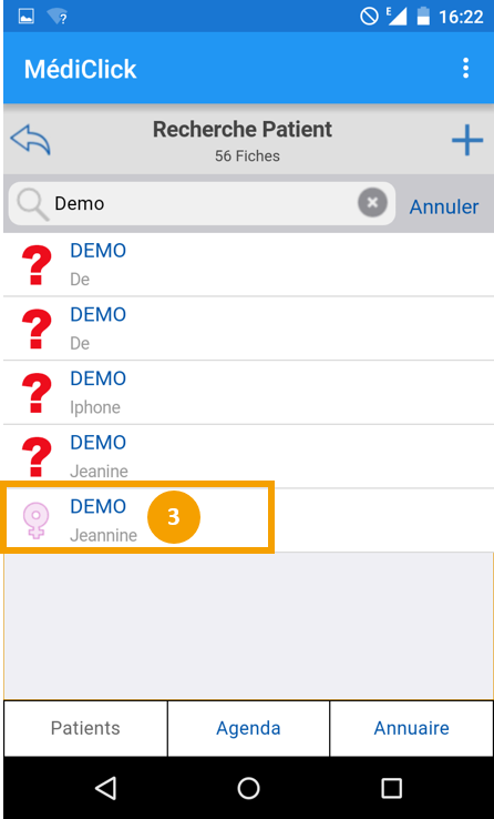 3. Cliquez sur le nom du patient dont vous souhaitez voir le dossier :