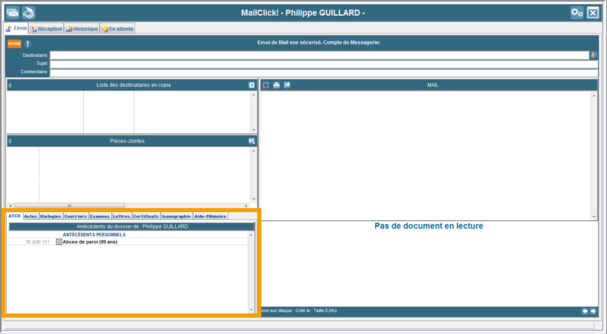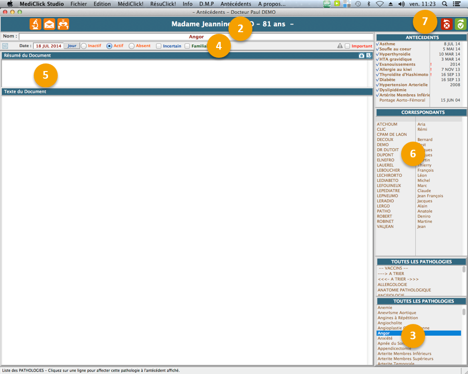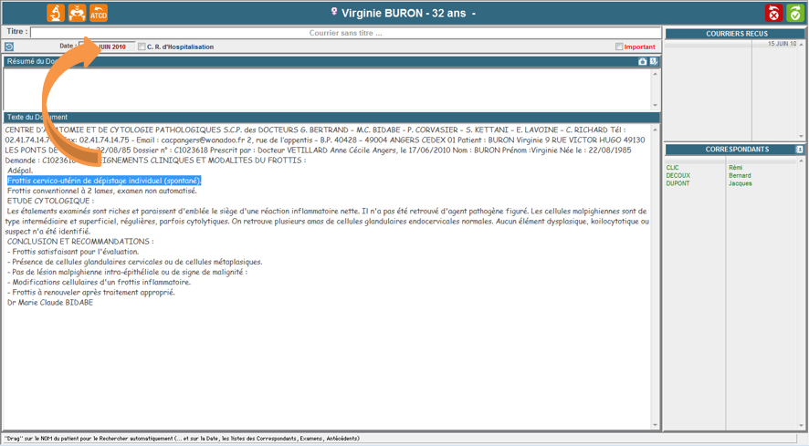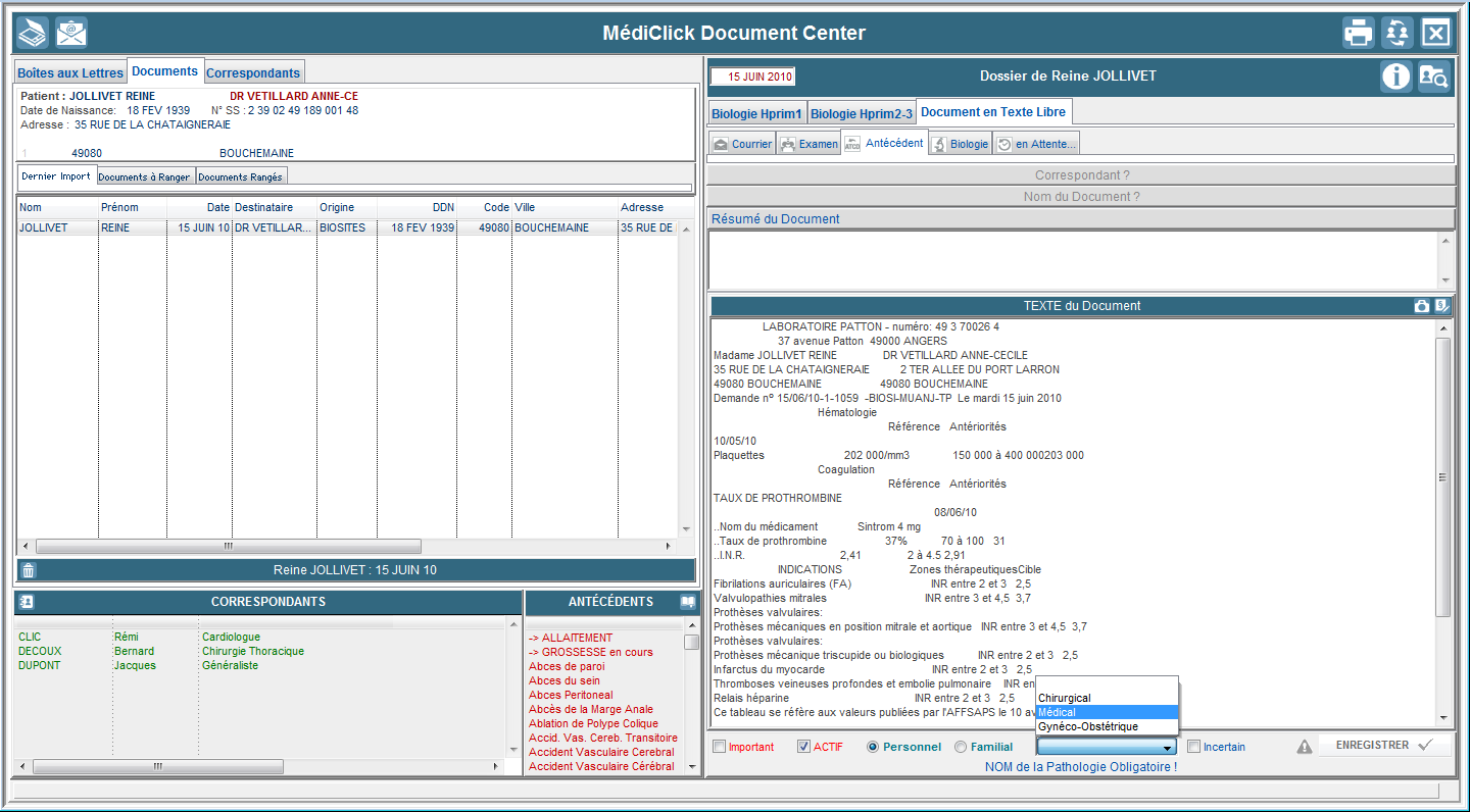 6. Si un autre praticien suit l'antécédent du patient, double-cliquez sur celui-ci depuis la liste Correspondants.