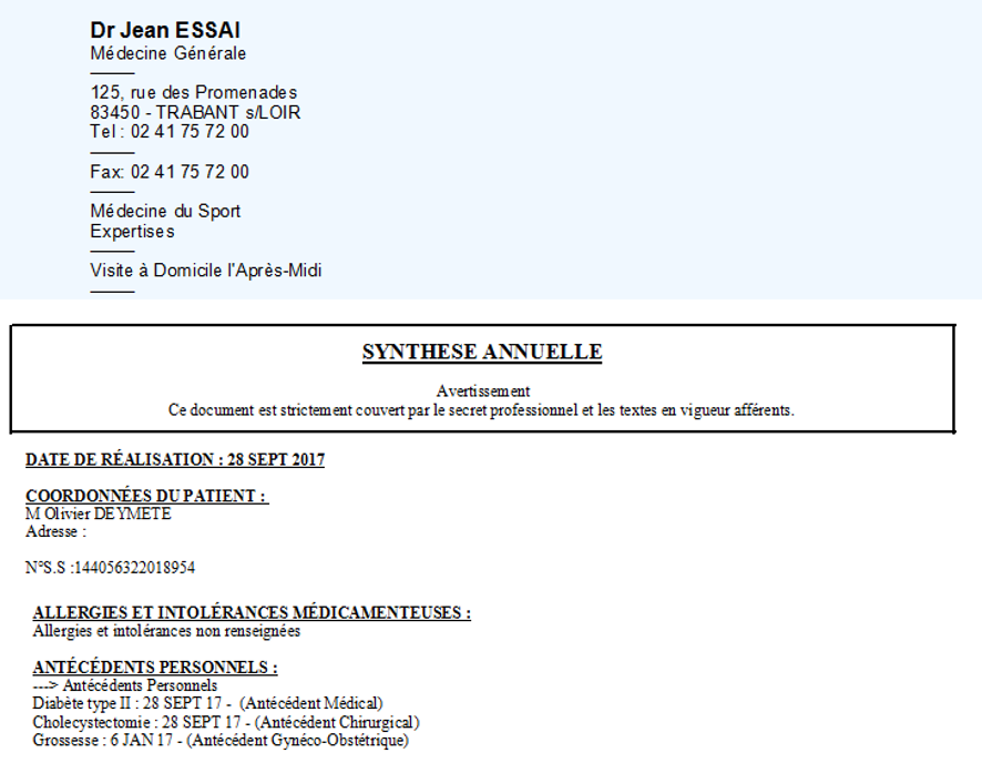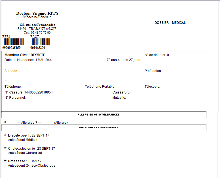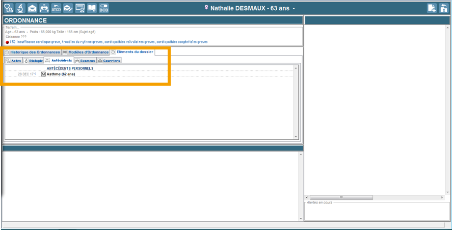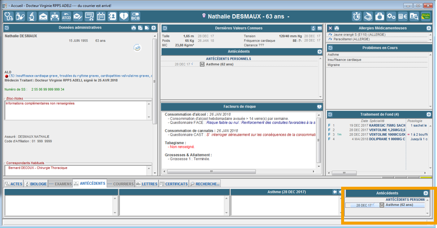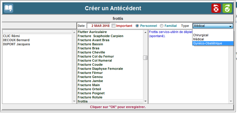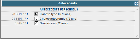Une fois votre antécédent personnel validé, vous le retrouvez dans le cadre Antécédents.