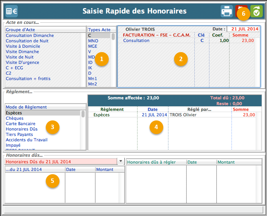 Saisie rapide d'un honoraire