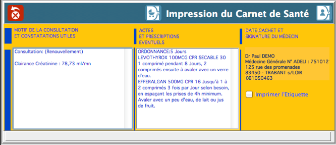 Selon le contenu de l’ordonnance et les diverses pathologies du patient, une alerte mentionne les Contre-indications et les précautions d'emploi détectées.