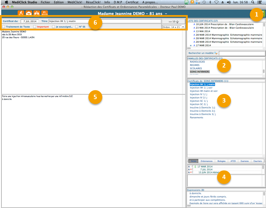 Pour créer un nouveau certificat ou une nouvelle ordonnance paramédicale :