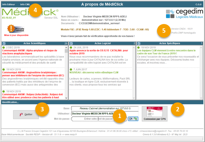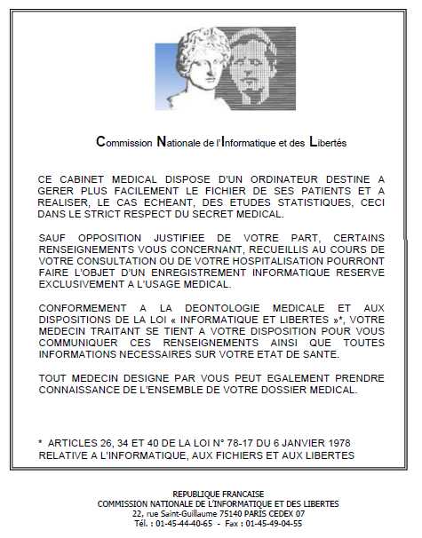 4. Lien vous permettant d'ouvrir les informations CNIL (Commission Nationale de l'Informatique et des Libertés) afin que vous puissiez les imprimer et les afficher dans votre cabinet.