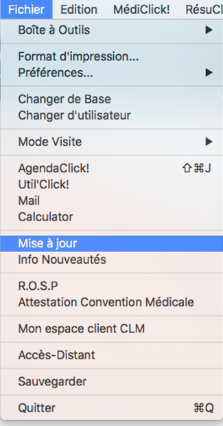 Il est aussi possible d'accéder à Médiclick Update depuis le menu FichierMise à jour.
