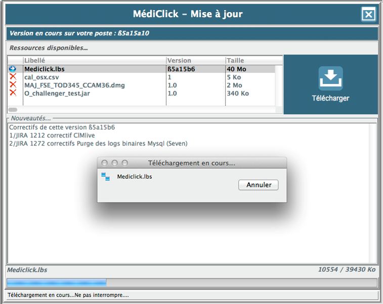 Durant le téléchargement des ressources, il n'est pas possible d'utiliser MédiClick.