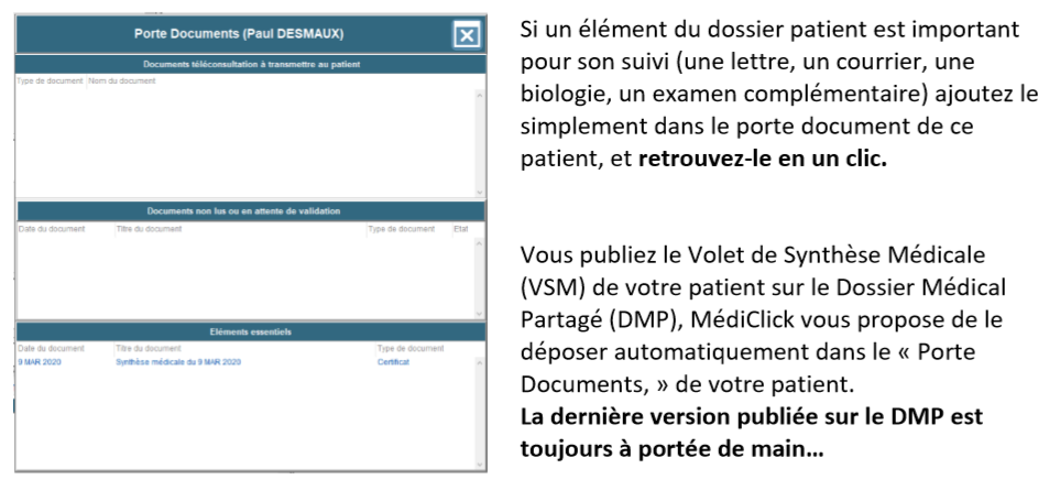 Le Porte-document vous simplifie la gestion documentaire et le suivi de vos dossiers patients.