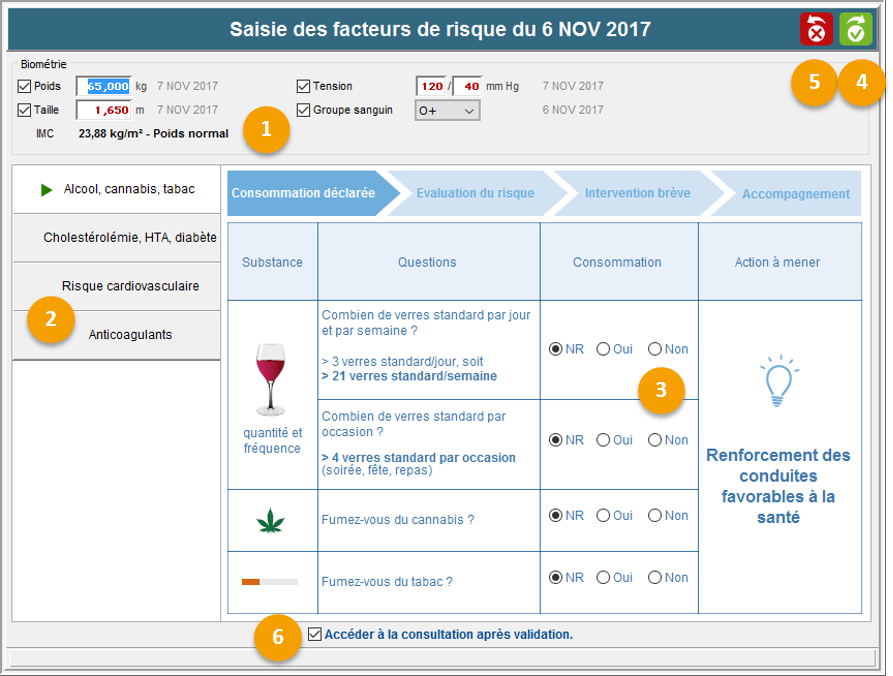 6. Option permettant d'accéder à la consultation après la validation du masque Facteurs de risque.