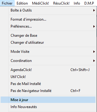 Il est aussi possible d'accéder à MédiClick Update depuis le menu FichierMise à jour.