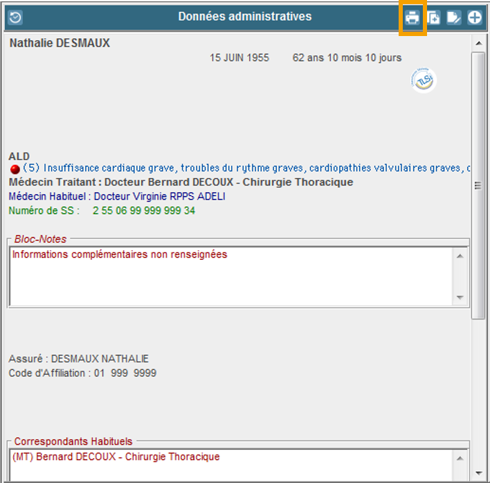 Depuis la fenêtre des données administratives, cliquez sur ce bouton.