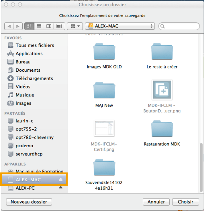Sélectionnez votre support de sauvegarde et cliquez sur Choisir