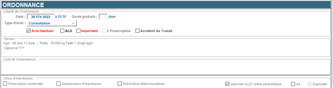 • Cochez A4 pour éditer les ordonnances au format A4 au lieu du format A5 (Sécu) défini par défaut.