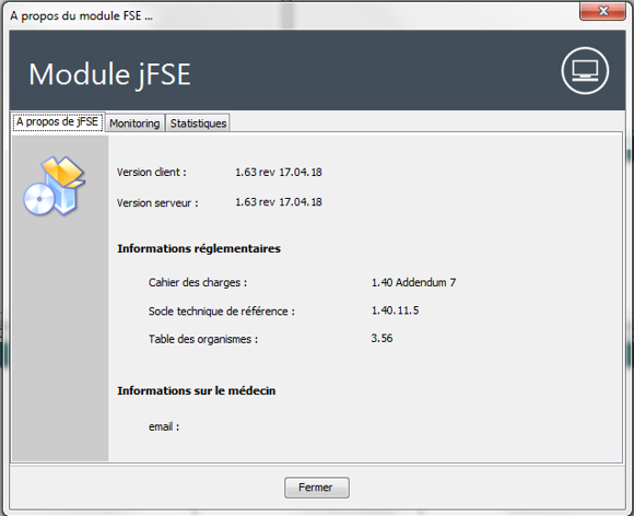 | . | Aide en ligne MédiClick - version 22.00 > La Feuille de soins (JFSE) > Les paramétrages > Connaître la version des composants Sesam Vitale |