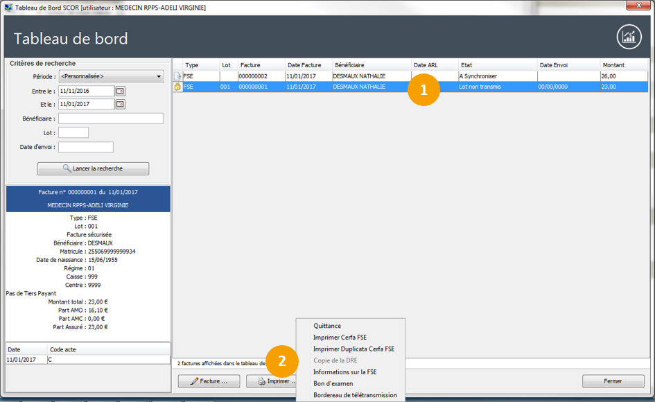 Vous pouvez également imprimer le bordereau lors de la télétransmission des feuilles de soins. Cochez l'option, puis indiquez pour quel type de FSE vous souhaitez imprimer ce bordereau. ![]() |